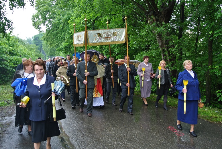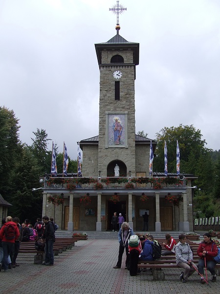 W piątek przed wyjazdem prognoza we wszystkich mediach wskazywała, że w sobotę cały dzień będzie deszczowy i tak zaczął się sobotni poranek. Po zajęciu miejsc w autobusie okazało się, że są jeszcze wolne miejsca. Pan kierowca potwierdził, że autobus nie jest większy, jest taki jak był zamówiony. Przeczytana lista obecności potwierdziła to, brakowało kilku osób. Wszyscy uczestnicy byli przygotowani do wędrówki. Kurtki przeciwdeszczowe, peleryny oraz parasole były w pogotowiu. Przydały się gdy wysiedliśmy z autobusu na parkingu pod Dębowcem. Wyruszyliśmy na Polanę Dębowiec, gdzie przystanęliśmy przy nowo wybudowanej kaplicy pw. Matki Boskiej Fatimskiej. Stąd wyruszyliśmy do schroniska na Szyndzielni i już po chwili przestało padać. Przy pierwszym odpoczynku, ekwipunek przeciwdeszczowy był zbędny. Po dotarciu do schroniska niebo zrobiło się niebieskie, słoneczko grzało, że można było się opalać. Po odpoczynku wyruszyliśmy przez szczyt Szyndzielni 1028 mnpm na Klimczok 1117 mnpm, skąd roztaczają się widoki na Beskid Śląski i Żywiecki. Niestety niebo spowiło się chmurami, ze szczytu nie było widać nawet pobliskiego schroniska Klimczok. Po dojściu do niego, zrobiliśmy sobie prawie godzinny odpoczynek. Jeszcze godzina marszu dzieliła nas do Sanktuarium Matki Boskiej w Szczyrku na Górce, w czasie którego nagle chmury odsłoniły górskie szczyty. Ukazał się piękny widok na najwyższy szczyt Beskidu Śląskiego Skrzyczne 1257 mnpm, później na resztę pasma oraz Beskid Żywiecki i Mały. Wtedy wybiła godzina 12.00. Patrząc na górski krajobraz odmówiliśmy Anioł Pański. Po dotarciu do Sanktuarium Królowej Polski Pani Beskidu Śląskiego uklęknęliśmy i odmówiliśmy różaniec przed Cudownym Obrazem Czarnej Pani. Tak nazwały Szczyrkowską Matkę Bożą trzy dziewczynki Julianna i dwie Marianny. Matka Boska rozmawiała z nimi ukazując się na konarze buka, który przechowywany jest w kapliczce koło kościoła do dziś. Znajduje się tu także Grota Niepokalanej i cudowne źródełko, które wytrysnęło na prośbę dziewczynek. Przed Mszą św. salezjanin ks. Piotr Wala przedstawił nam historię objawień i współczesne czasy sanktuarium. Mszę św. odprawił ks. proboszcz Janusz Gacek w intencji naszych próśb skierowanych do Szczyrkowskiej Wspomożycielki. Sobota była świętem Podwyższenia Krzyża Świętego, po Mszy św. każdy z nas ucałował relikwie Krzyża Świętego znajdujące się w sanktuarium. Następnie udaliśmy się na ognisko z pieczeniem kiełbasy przy Salezjańskim Domu Młodzieży. Gdzie zjedliśmy smaczny posiłek, odbyły się żartobliwe rozmowy oraz konkurs wiedzy dla dzieci o bł. Janie Pawle II i Beskidzie Śląskim. Nagrodami były albumy o Janie Pawle II i książki krajoznawcze. Następnie zeszliśmy do centrum Szczyrku do drewnianego kościoła z 1800 r., Sanktuarium św. Jakuba Apostoła. Historię tej świątyni opowiedział nam kleryk Kamil ze Szczyrku. Stąd udaliśmy się prosto do autobusu czekającego na nas na parkingu pod skoczniami narciarskimi na Skalitem i powróciliśmy do Pisarzowic.
