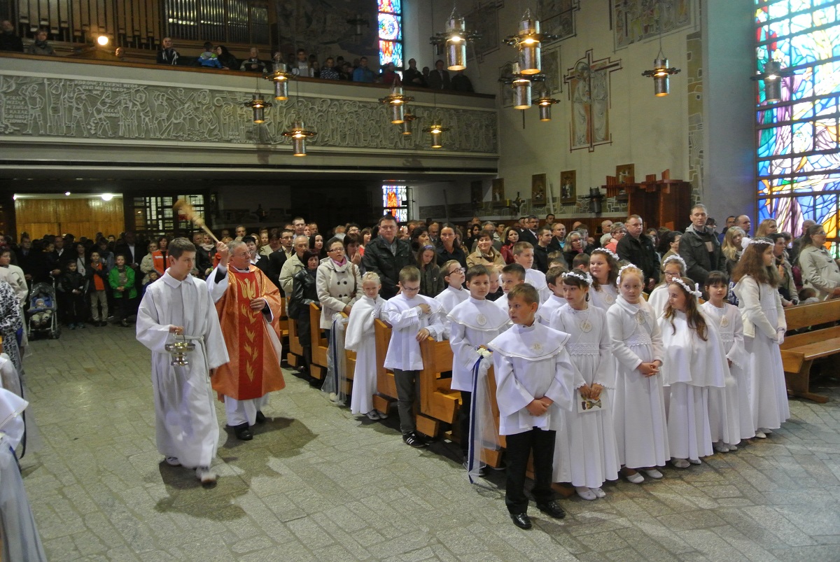 - Rocznica Pierwszej Komunii Świętej W Uroczystość Zesłania Ducha Świętego w naszej parafii obchodziliśmy również wraz z dziećmi klas trzecich Rocznice Pierwszej Komunii Świętej. 18 maja 2014 roku dzieci te po raz pierwszy otrzymały najcenniejszy prezent od Boga – Ciało Chrystusa. Dzieci wraz z rodzicami, bliskimi oraz Ks. Ireneuszem udały się 26 maja na dziękczynna pielgrzymkę do Kalwarii Zebrzydowskiej.