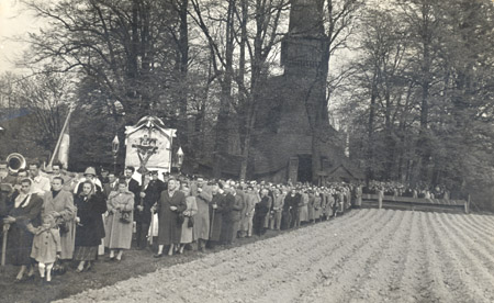 Ks. Kardynał w tym czasie otoczony licznym duchowieństwem z różańcem w ręku patrzał jak krzyż zostaje wzniesiony w jego imieniu. Sam później wyraził, że bardzo przeżywał tę chwilę, gdyż było to zbyt ryzykowne. (Ks. Piela - Kronika ).